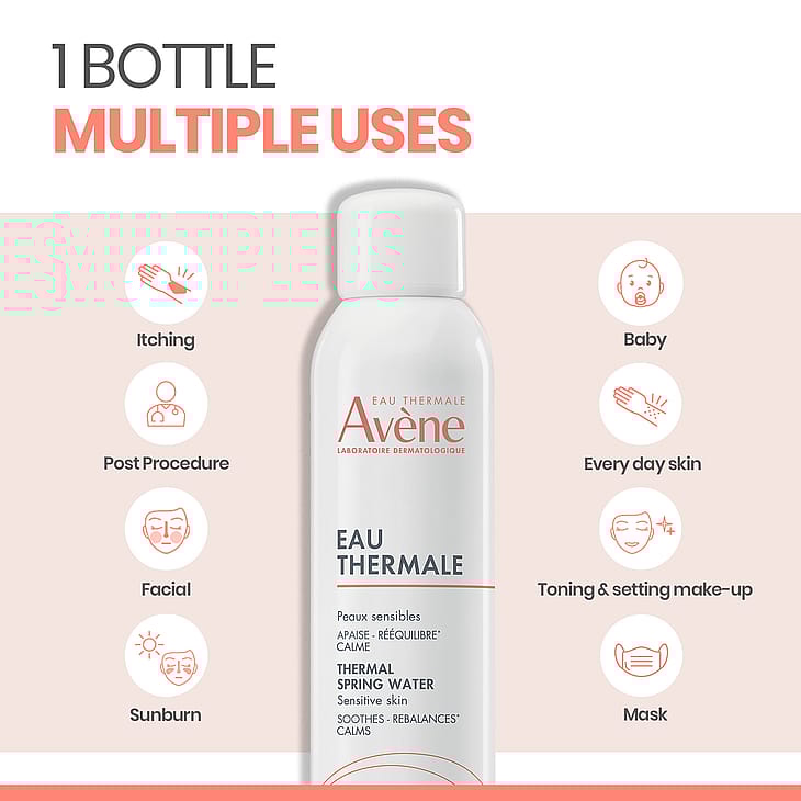 Termalkildevandet indeholder mineraler og sporstoffer, som hjælper til at rebalancere huden. Produktet indeholder også en specifik mikroflora, der bidrager til vandets unikke karakter og er med til at berolige huden uden at udtørre den. Det er ligeledes rigt på silica, som giver blødhed og velvære samt en øjeblikkelig følelse af komfort. Med et enkelt tryk frigives en ultrafin mist, der føles let og frisk på huden og absorberes hurtigt, uden at udtørre huden. Termalkildevandet er en naturlig kilde til velvære og kan bruges som en central del af din daglige hudplejerutine. Det hjælper med at berolige rødme, kløe og stramhed og er ideel efter rens, som forberedelse til creme eller som opfriskning i løbet af dagen – især i varme temperaturer, hvor det virker nedkølende og beroligende.