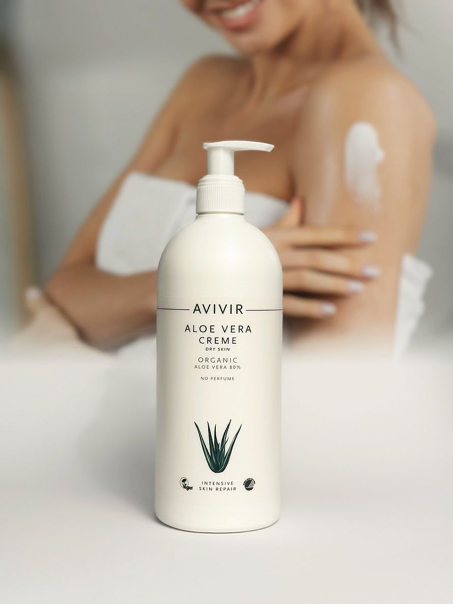 Avivir Aloe VeraSuper creme, som har minimeret kløe på armene.