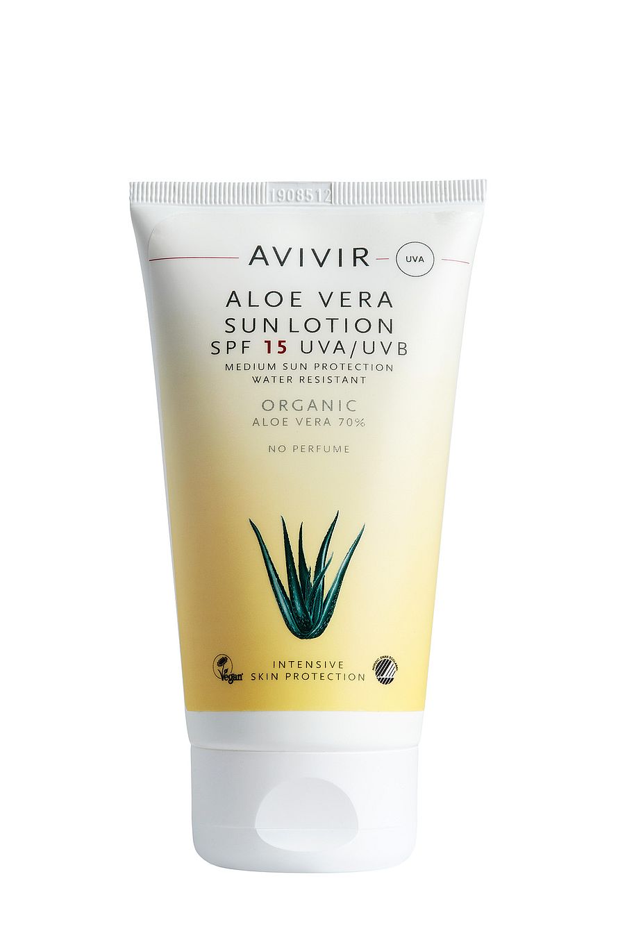 - AVIVIR Aloe Vera Sun Lotion påføres inden solbadning
