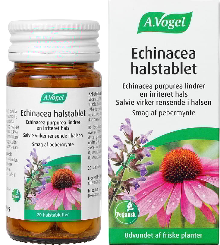 Echinacea halstabletten er vegansk, fri for sukker og alkohol, og er nem at tage med og bruge, når behovet opstår.