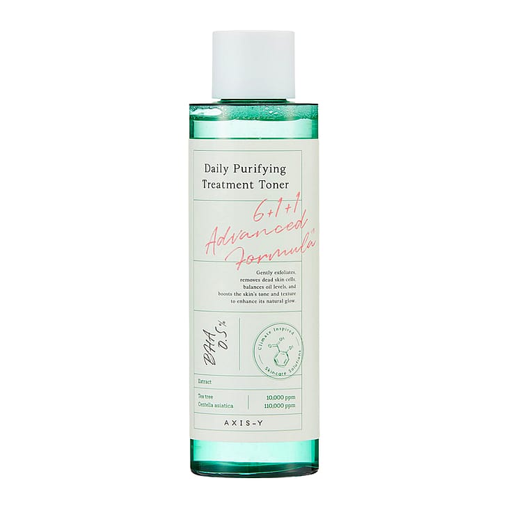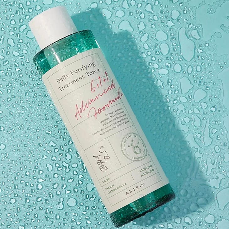 Rensende toner med AHA, PHA, og Centella Asiatica, fjerner bakterier, eksfolierer, og beroliger.