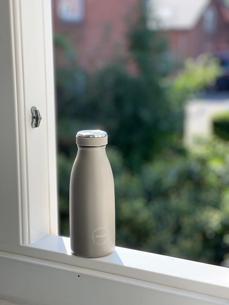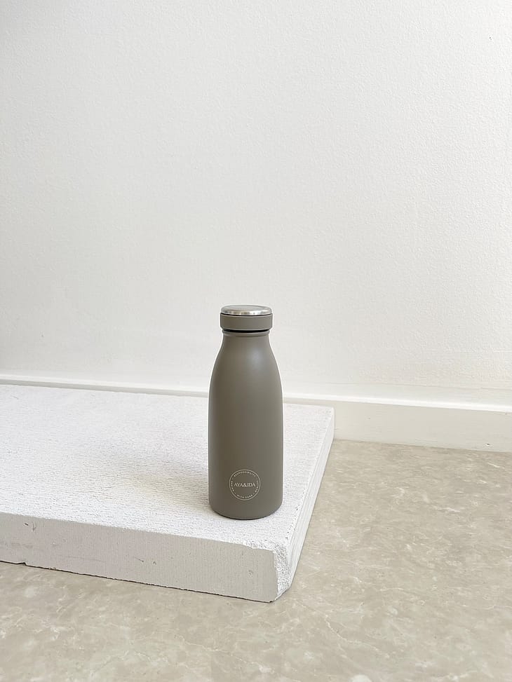 Populær og genanvendelig termoflaske. AYA&IDAs drikkeflaske, i den klassiske 350 ml, holder væsken kold i 24 timer og varm i 12. Perfekt til livet på farten; i skolen, på studiet, på arbejdet eller på rejsen.