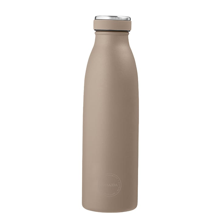 Populær og genanvendelig termoflaske. AYA&IDAs drikkeflaske, i den klassiske 500 ml, holder væsken kold i 24 timer og varm i 12. Perfekt til livet på farten; i skolen, på studiet, på arbejdet eller på rejsen.