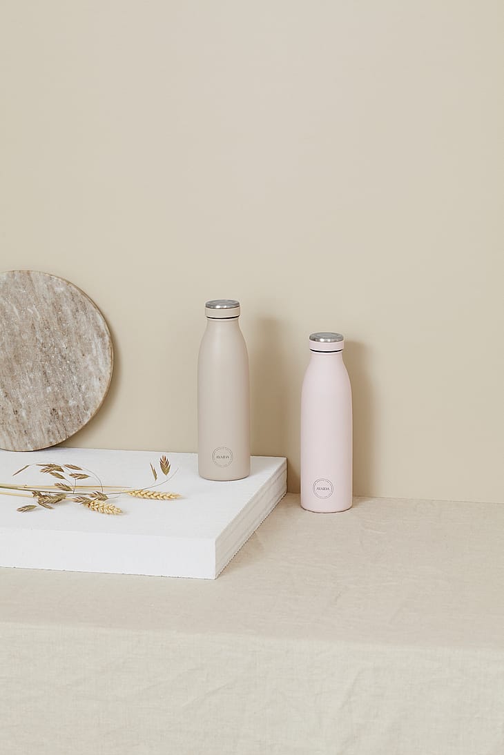 AYA&IDAs drikkeflaske, i den klassiske 500 ml, holder væsken kold i 24 timer og varm i 12. Perfekt til livet på farten; i skolen, på studiet, på arbejdet eller på rejsen.