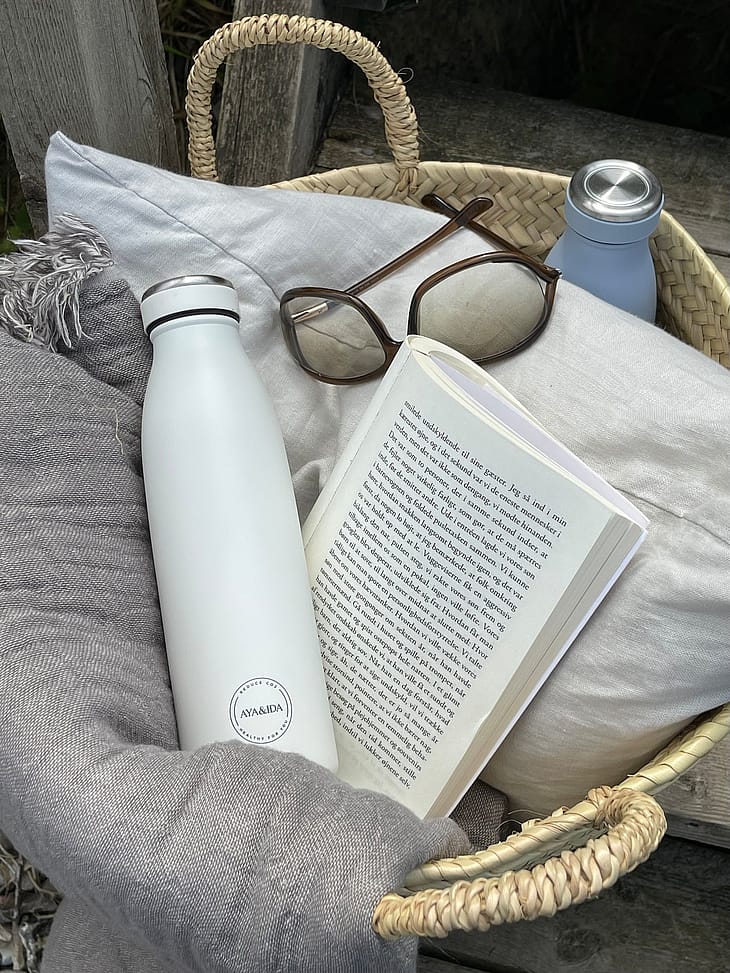 AYA&IDAs drikkeflaske, i den klassiske 500 ml, holder væsken kold i 24 timer og varm i 12. Perfekt til livet på farten; i skolen, på studiet, på arbejdet eller på rejsen.