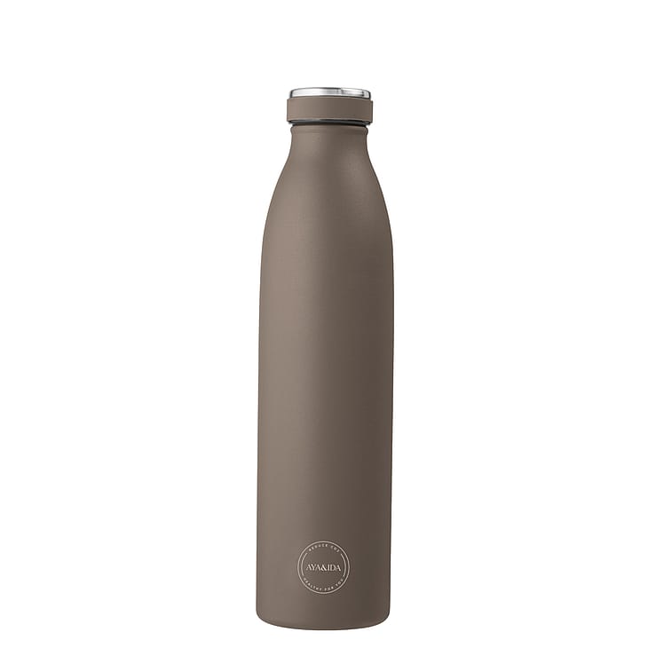 AYA&IDAs drikkeflaske, i 750 ml, holder væsken kold i 24 timer i varm i 12. Perfekt, hvis man skal have lidt ekstra vand med på turen; i bilen, til sport eller på rejsen.