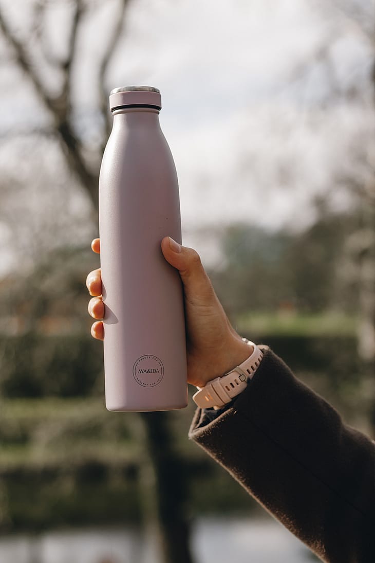 AYA&IDAs drikkeflaske, i 750 ml, holder væsken kold i 24 timer i varm i 12. Perfekt, hvis man skal have lidt ekstra vand med på turen; i bilen, til sport eller på rejsen.