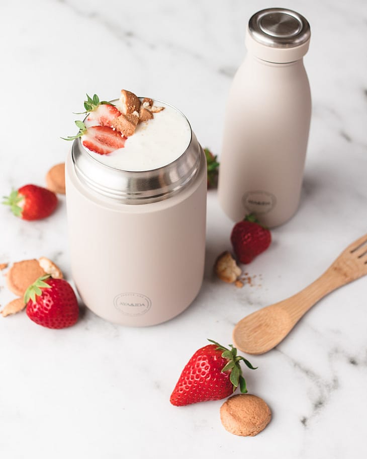 AYA&IDAs Food’ie, i 700 ml, er en stor termomadkasse, der holder maden kold i 12 timer og varm i 8. Perfekt når du skal holde maden i rette temperatur; i skolen, i mødregruppen, på arbejde eller når familien skal på tur. Ideel til grød, suppe, wok, overnight oats eller koldskål.