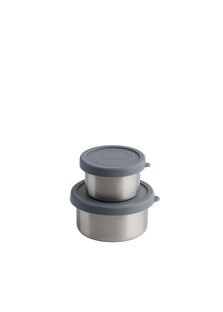 AYA&IDA Snack Containers er fremstillet i rustfri stål 18/8 med låg i blød og fleksibel silikone, som sikrer en tæt beholder og nem håndtering.