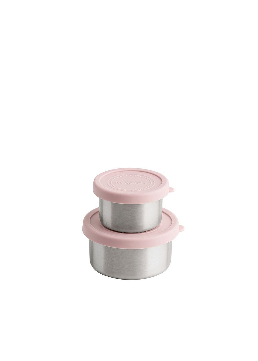 AYA&IDA Snack Containers er fremstillet i rustfri stål 18/8 med låg i blød og fleksibel silikone, som sikrer en tæt beholder og nem håndtering.