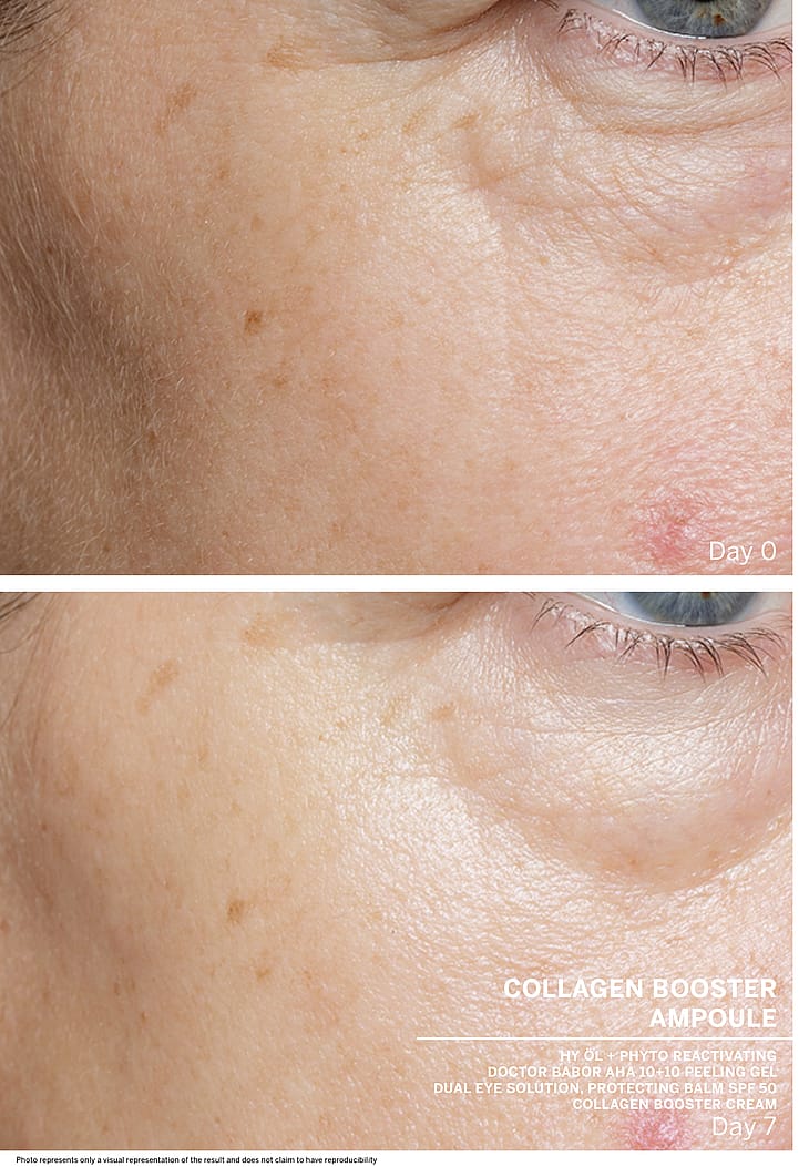 De aktive ingredienser i Collagen Booster er med til at give huden fylde, styrke og opbygge kollagennetværket. Ved regelmæssig brug fremmer tripeptider og proteinenzymer hudens elasticitet og reducerer rynker. Resultatet er en hud, der synes glat og fyldig.