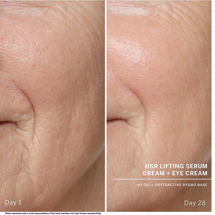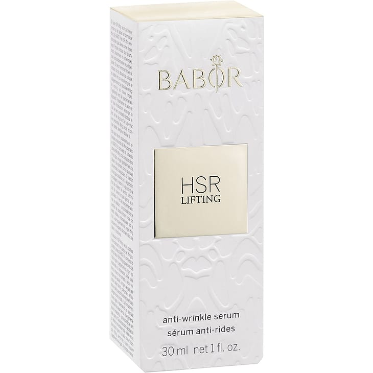Det luksuriøse HSR Lifting Serum sætter nye standarder inden for kosmetiske løft hos BABOR. HSR Lifting Active Ingredient Complex virker effektivt mod alle typer rynker: Tyngde- og udtrykslinjer, f.eks. bekymringsrynker, læberynker og nasolabial-fuger. Rynker forårsaget af nedbrydning af kollagen og elastin samt glykation af kollagenfibre fremstår mindre tydelige. Naturligt udvundet glukosid hjælper med at bremse dannelsen af nye rynker. Samtidig fremstår hyperpigmenteringen mere dæmpet. Polysakkarider fra tretornfrø hjælper med at opstramme huden med øjeblikkelige, synlige og langvarige resultater. Et personligt løft af din hud, der synligt udglatter, udfylder og opstrammer den.