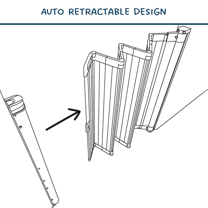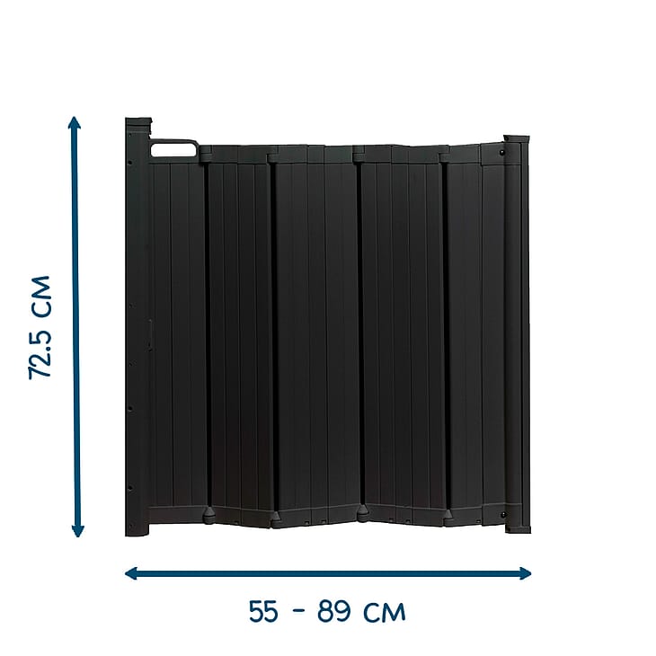 Dette innovative, foldbare sikkerhedsgitter er designet med både bekvemmelighed og sikkerhed for øje og er en elegant og praktisk måde at babysikre din bolig på.