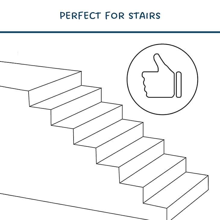 - Ingen snublefarer, da der ikke er noget ”dørtrin” - det gør den perfekt til trapper og gange.