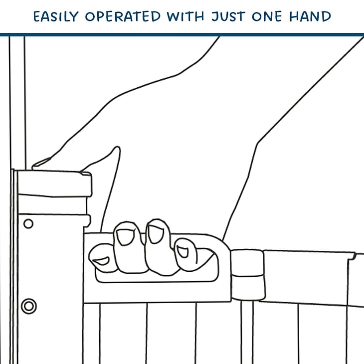 - Betjenes nemt med én hånd i en enkel træk- og trykbevægelse. Du behøver altså ikke at lægge dit barn fra dig, eller hvad du ellers bærer på i den anden arm.