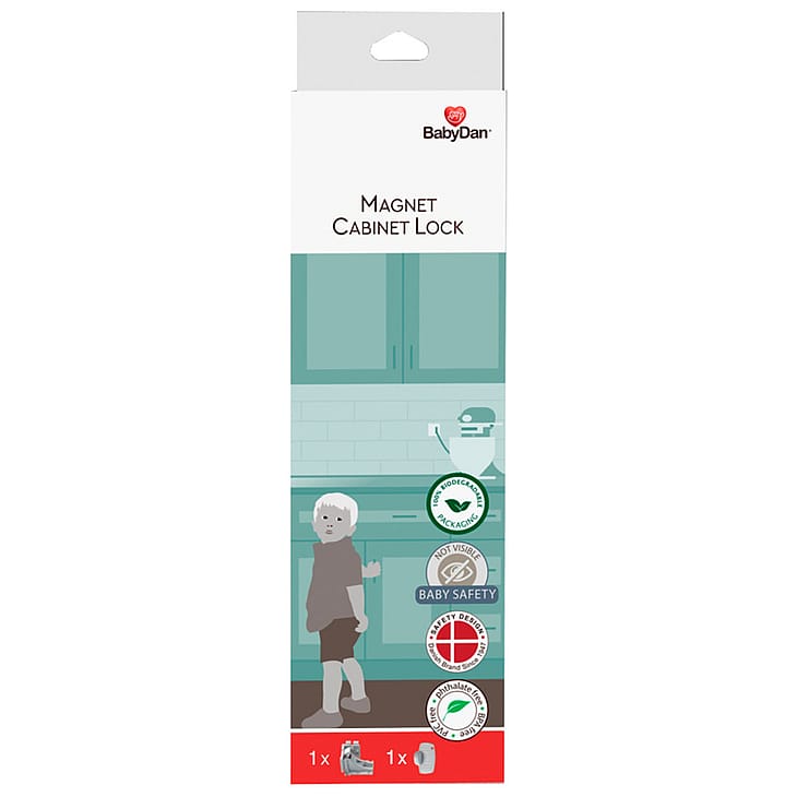 MagnetlåsDu kan gøre det nemt at børnesikre skuffer og skabe med magnetlåsen.