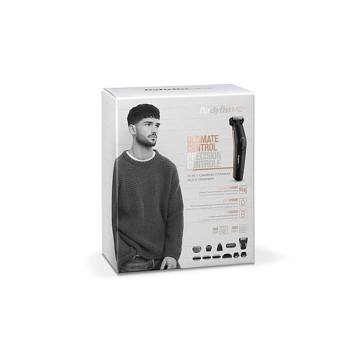 BaByliss Multi Trimmer 11-in-1 Titanium MT860E (W) er den ultimative ansigts- og kropstrimmer til mænd, der ønsker præcision og alsidighed. Med denne ene trimmer kan du trimme, style og forme både skægstubbe, skæg, bakkenbarter, øjenbryn, næse- og ørehår samt kropsbehåring.