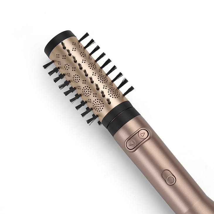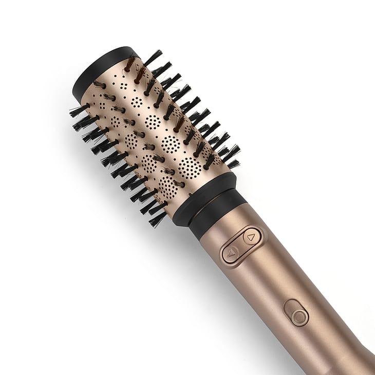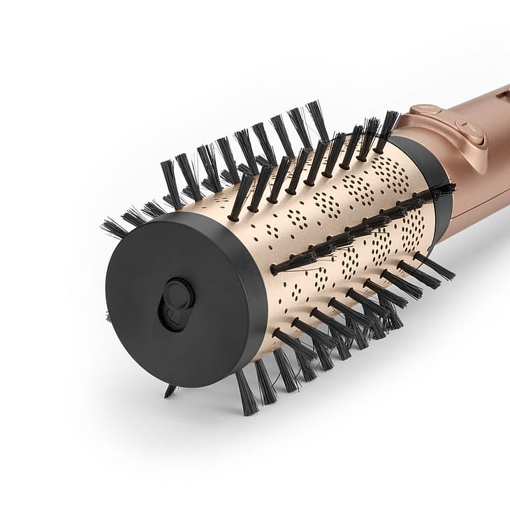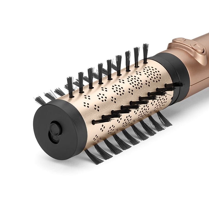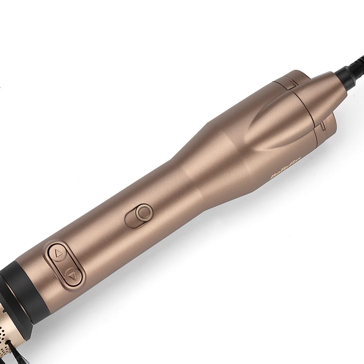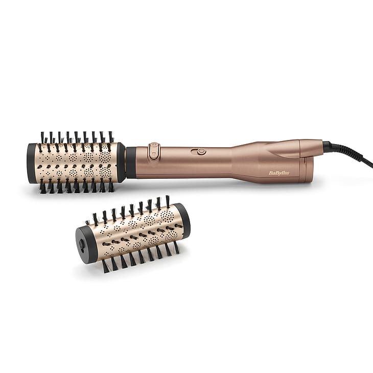 BaByliss Big Hair Dual Gold Edition AS952E er din genvej til et professionelt føntørret look – hver dag! Den roterende varmluftsbørste gør det nemt at skabe volumen, fylde og form, mens den keramiske belægning og ion-teknologien sikrer et glansfuldt resultat uden krus. Denne varmluftsbørste er en sand hjælp til at opnå smukt hår.Til enhver, der ønsker salon-smukt hår derhjemme.