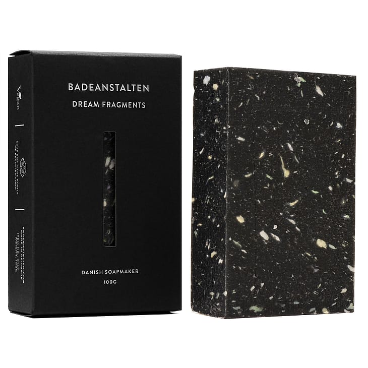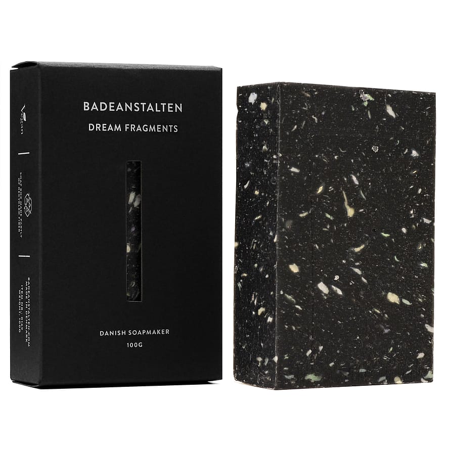 Drømmefragmenter er en sort sæbe med rensende aktivt kul, der effektivt absorberer snavs og olie fra huden. Sæben har en frisk og syrlig duft af æterisk citrusgræsolie, som er kendt for sine adstringerende og stimulerende egenskaber.