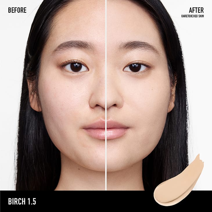 Olie-fri, farvet creme. Minimerer porer og giver mat finish.