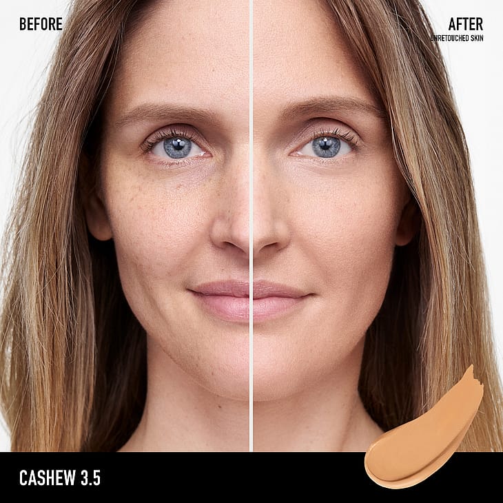 Olie-fri, farvet creme. Minimerer porer og giver mat finish.