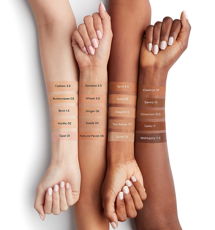 Olie-fri, farvet creme. Minimerer porer og giver mat finish.