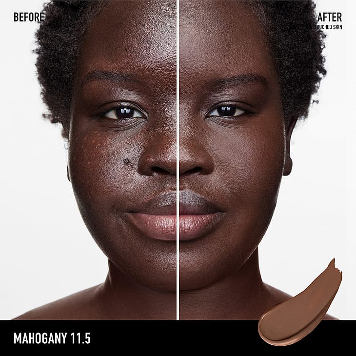 Olie-fri, farvet creme. Minimerer porer og giver mat finish.