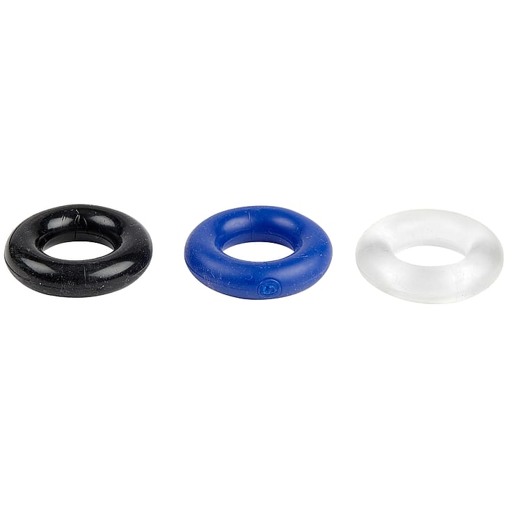 De tre penisringe har samme størrelse, men de tilbyder forskellige måder at forbedre dine seksuelle oplevelser, enten enkeltvis eller samlet.
