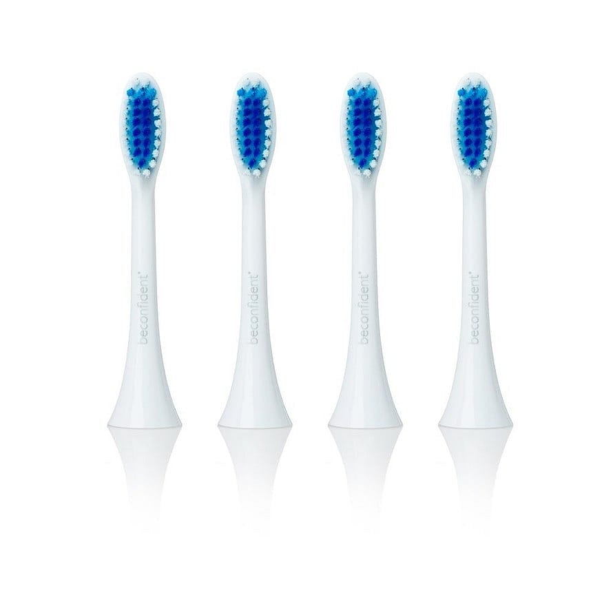 Bliv renere og hvidere tænder med 4-pak Beconfident® Sonic tandbørstehoveder Regular.