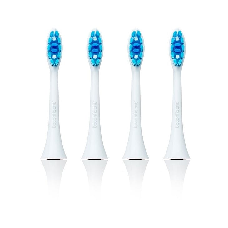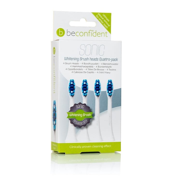 Bliv renere og hvidere tænder med 4-pak Beconfident® Sonic tandbørstehoveder Whitening Hvid.