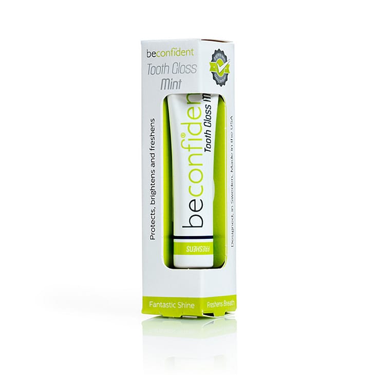 Beconfident® tandglans 10 ml: Med Beconfident's tandglans får tænderne en øjeblikkelig glød takket være en patenteret formel, der blandt andet indeholder Carnauba voks.