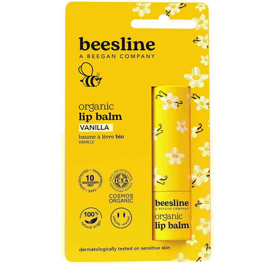 Beesline Organic Lip Balm Vanilla er en læbepomade lavet af naturlige og økologiske ingredienser, der giver læberne langvarig fugt og beskyttelse. Læbepomaden lindrer tørre læber og har en dejlig duft og smag af vanilje.