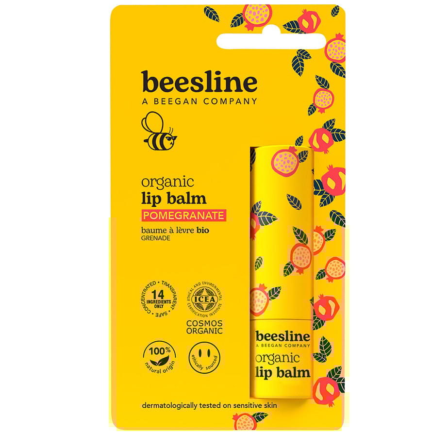 Beesline Organic Lip Balm Pomegranate er en lip balm lavet af naturlige og økologiske ingredienser, der giver læberne langvarig fugt og beskyttelse.