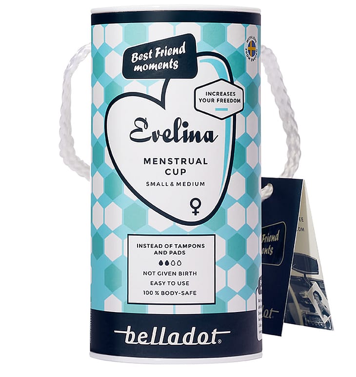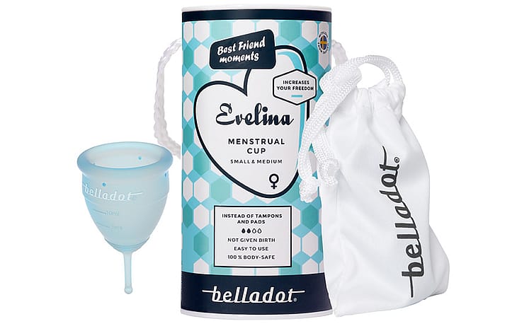 Belladot Evelina menstruationskop er en lille tragtformet, ikke-absorberende menstruationskop, der opsamler menstruationsblodet.