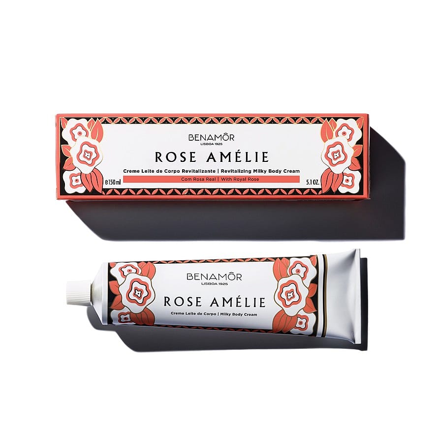 Forkæl din krop med vores delikat duftende fugtgivende Rose Amélie-creme. Infunderet med arganolie og royal rosenekstrakt. Dens flydende og mælkeagtige tekstur absorberes af huden som ingen anden og giver en uimodståelig frisk fornemmelse!