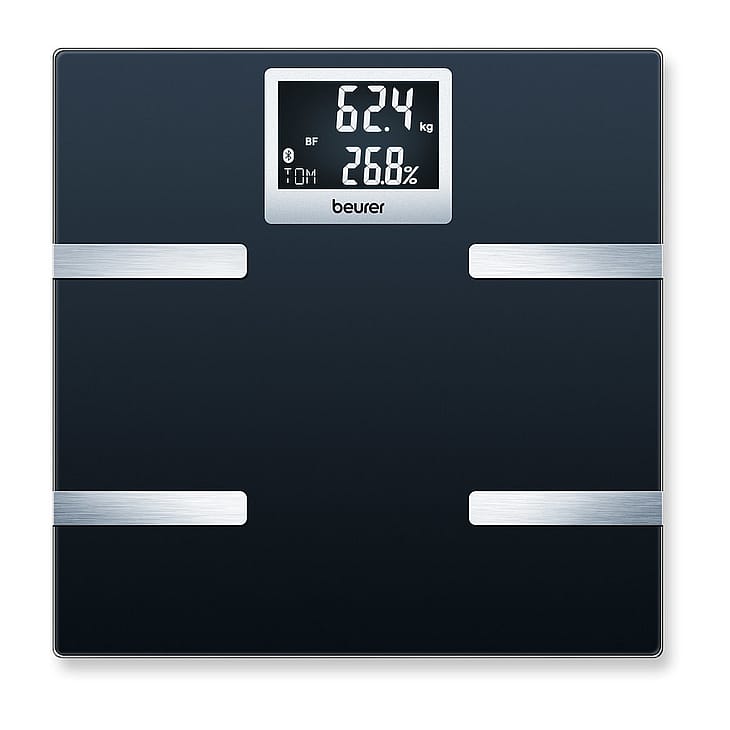 Beurer BF 700 kropsanalysevægt med innovativ bluetooth teknologi, der gør det muligt for dig at holde styr på dine kropsmålinger både derhjemme og på farten via den gratis app Beurer Health Manager.
