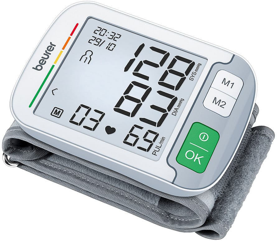 Manchetten passer til en håndledsomkreds fra 12,5 – 21 cm. BC 51 har arytmidetektor, som advarer i tilfælde af uregelmæssig hjerterytme. Risikoindikatoren giver dig hurtig indsigt i din måling vha. grøn/gul/rød farveafkodning.