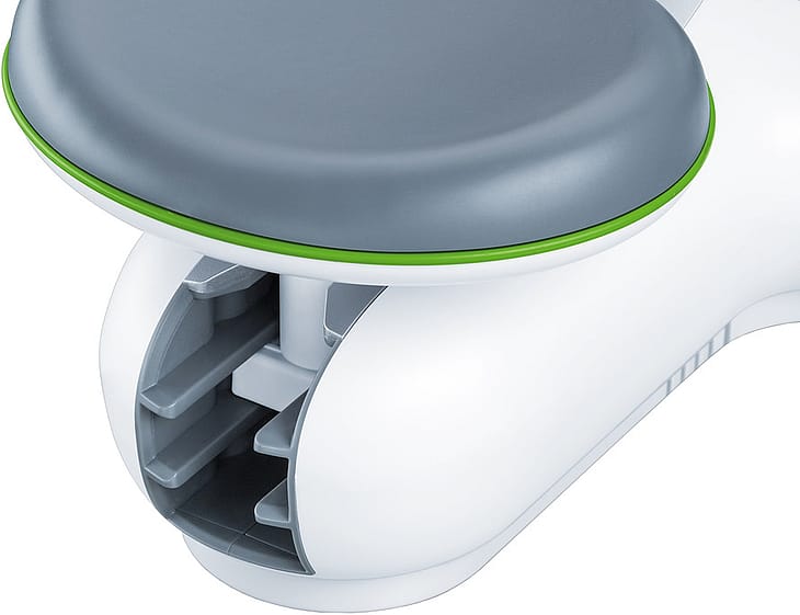 FM 200 masserer dér hvor smerten er, nemlig i akillessenen. FM 200 har 6 roterende massagehoveder, som både kan rotere med og mod uret. Med to hastigheder kan du tilpasse massagen efter dit behov. Underbenet hviles på lægstøtten, så akillessenen ligger mellem massagehovederne. Lægstøtten kan justeres i højden og dybden.