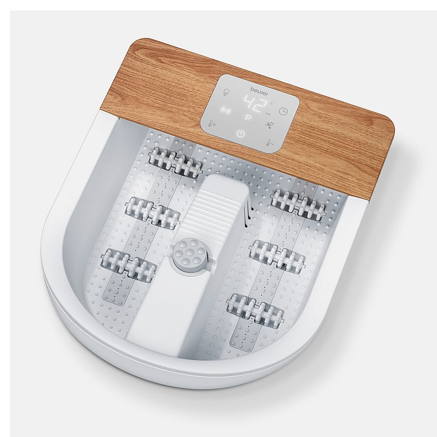 Med luksusfodspaen FB65 fra Beurer får dine fødder den ultimative forkælelse i dit eget hjem. Et væld af funktioner såsom vibrations- og boblemassage, massageruller til fodsålerne og vandopvarmning med 8 temperaturindstillinger kombineret med stemningsfuld belysning er med til at sørge for en helstøbt og afslappende spaoplevelse.