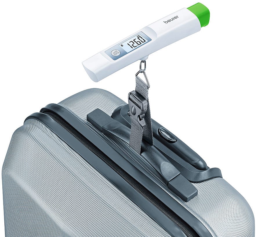 Bagagevægten fra Beurer har nemlig dynamobatteri. Tryk én gang på den grønne knap, og den er klar til at veje din bagage. Bagagevægten kan veje op til 50 kg og vejer med 10 g interval. Vægten har automatisk holdfunktion.