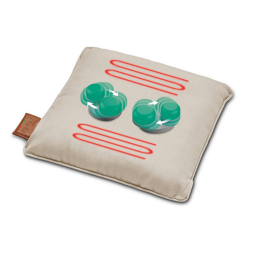 der under visse omstændigheder risiko for brand! Massageapparatet må derfor • aldrig anvendes under en afdækning, som f.eks. tæpper, puder, osv. • aldrig anvendes i nærheden af benzin eller andre letantændelige stoffer. ADVARSEL Håndtering • Apparatet skal altid slukkes, og stikket trækkes ud efter brug og før rengøring, undtagen når apparatet skal oplades. • Sid, lig eller stå ikke med hele din vægt på apparatets bevægelige dele, og stil ingen genstande på apparatet. • Beskyt apparatet mod høje temperaturer. ADVARSEL Anvisninger vedrørende batterier • Hvis væske fra batteriet kommer i kontakt med hud eller øjne, skal det pågældende sted skylles med vand, og man skal søge læge. • Kvælningsfare! Småbørn kan sluge batterier og blive kvalt. Batterierne skal derfor opbevares utilgængeligt for småbørn! • Hvis der er løbet batterisyre ud af batteriet, skal du tage beskyttelseshandsker på og bortskaffe apparatet. • Beskyt batterier mod meget høj varme. • Eksplosionsfare! Kast aldrig batterier ind i ild. • Batterier må aldrig skilles ad, åbnes eller knuses. • For at opnå så lang levetid som muligt for batteriet, skal du lade det helt op mindst 2 gange om året. • Sluk altid for apparatet, før det oplades. • Genopladelige batterier skal oplades korrekt før brug. Følg altid producentens anvisninger eller anvisningerne i denne betjeningsvejledning med henblik på korrekt opladning. Start anvendelsen Apparatet slukker automatisk. Det betyder, at apparatet slukker automatisk efter 15 minutters drift. FORSIGTIG • Brug massageapparatet, indstillet på massagefunktionen i højst 15 minutter. Ved længere tids massage kan en overstimulation af musklerne medføre spændinger i stedet for afspænding. • Undlad at klemme eller tvinge kropsdele, især fingre, ind mellem de roterende massagehoveder og deres holdere i apparatet. Rengøring ADVARSEL • Træk netadapteren ud af stikkontakten inden hver rengøring, og frakobl den apparatet. • Rengør kun apparatet, som angivet. Der må under ingen omstændigheder trænge væske ind i apparatet eller tilbehøret. • Mindre pletter kan fjernes med en klud eller en fugtig svamp og eventuelt lidt flydende finvaskemiddel. Brug ikke rengøringsmidler, der indeholder opløsningsmidler. • Brug først apparatet igen, når det er helt tørt. • Når du skifter betrækket, skal du være forsigtig med ikke at trække i betjeningselementet, da du kan beskadige det. • Det aftagelige betræk kan maskinvaskes ved 30 °C. Se symbolerne for pleje og rengøring på etiketten, der er syet fast i betrækket. • Anvend først apparatet igen, når alle bestanddele er helt tørre.