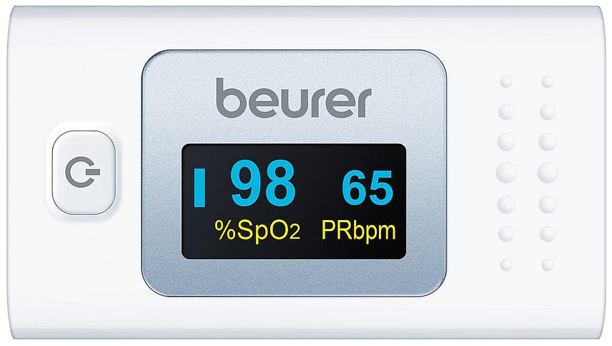 ADVARSELAnvend IKKE pulsoximetret- hvis du reagerer allergisk på gummiprodukter.- hvis apparatet eller den anvendte finger er fugtig.- til småbørn eller babyer.- på fingre med anatomiske forandringer, ødemer, ar eller forbrændinger.- på fingre med stor omkreds, som ikke kan føres ind i apparatet uden tvang (fingerspids: bredde ca. >20 mm, tykkelse ca. >15 mm)- på fingre med for lille omkreds, eksempelvis på småbørn (bredde ca. <10 mm, tykkelse ca. <5 mm).- på patienter, som er urolige (f.eks. ryster).Bivirkninger• Fingerskader som kemiske eller termiske forbrændinger, hudbruning, printerosion, sensorisk tab, koldbrand• Mekanismerne til disse komplikationer kan være: Trykiskæmi, langvarig brug, overophedning af sonde, forkert brug af sonde, kortslutning• Mulig måleafvigelse på en påvirket finger. I dette tilfælde bestemmes SpO2-værdien for lavt.• Lav nøjagtighed for SpO2-måling hos kritisk syge patienter: Iboende potentiel fejl på 3-4 % for målinger foretaget på sådanne patienter.ADVARSEL•Kontrollér, om alle dele er med.•Kontrollér pulsoximetret regelmæssigt for at sikre, at apparatet før brugen ikke har nogen skader, og at batterierne fortsat er tilstrækkeligt opladet. Anvend ikke apparatet i tvivlstilfælde, og kontakt Beurers kundeservice eller en autoriseret forhandler.•Anvend ikke tilbehørsdele, som ikke er anbefalet af producenten, eller som ikke tilbydes som tilbehør.•Apparatet må under ingen omstændigheder åbnes eller repareres, da en fejlfri funktion ellers ikke længere kan garanteres. Overholdes dette ikke, bortfalder garantien. Henvend dig til Beurers kundeservice eller en autoriseret forhandler, hvis der er brug for reparation.Generelle advarsler•Ved personer med kredsløbssygdomme kan længerevarende anvendelse af pulsoximetret medføre smerter. Anvend derfor ikke pulsoximetret i længere tid end 2 timer på én finger.•Pulsoximetret viser til enhver tid en øjebliksværdi, men kan ikke anvendes til kontinuerlig overvågning. Instrumentet er kalibreret til at vise den funktionelle iltmætning.•Pulsoximetret har ingen alarmfunktion og egner sig derfor ikke til vurdering af medicinske resultater.•Stil ikke selv nogen diagnose, og foretag ikke selv nogen behandling på grundlag af måleresultaterne uden samråd med din behandlende læge. Påbegynd i særdeleshed ikke selv nogen ny medicinering, og foretag ingen ændringer i måden og/eller doseringen af en bestående medicinering.•En kronisk og konstateret nedsat iltmætning skal overvåges med pulsoximetret under lægelig kontrol. Der skal omgående findes en lægelig forklaring på en akut nedsat iltmætning, med eller uden følgesymptomer. Det kan være en livstruende situation.•Se ikke direkte ind i husets indre under målingen. Pulsoximetrets røde lys og det usynlige infrarøde lys er skadelige for øjnene.•Dette apparat er ikke beregnet til at blive brugt af personer (herunder børn) med begrænsede fysiske, sensoriske eller mentale evner eller manglende erfaring og/eller viden, medmindre de er under opsyn af en anden person, der har ansvaret for deres sikkerhed, eller som giver dem anvisninger om, hvordan apparatet skal bruges. Børn skal være under opsyn, så de ikke leger med apparatet.•Hold emballagen uden for børns rækkevidde (fare for kvælning).•Hverken visningen af pulskurven eller af pulssøjlen giver mulighed for at foretage nogen vurdering af pulsens eller blodgennemstrømningens styrke på målestedet, men kan udelukkende anvendes til at vise den aktuelle optiske signalvariation på målestedet; de muliggør ikke nogen sikker pulsdiagnose.•Ved meget pigmenteret hud kan der forekomme måleafvigelser.• Anvend IKKE pulsoximetret- under en MRT- eller CT-undersøgelse.- under patienttransport uden for klinikken.- under en blodtryksmåling på den arm, hvor manchetten bruges.- på fingre med neglelak, tilsmudsninger eller områder forsynet med plaster.- i nærheden af brændbare eller eksplosive gasblandinger.- på hospitaler i AP- og APG-rum.Generelle forholdsreglerBEMÆRKHvis følgende anvisninger ikke overholdes, kan det medføre fejlagtige målinger eller funktionsfejl.• Der må ikke være neglelak, kunstige negle eller anden kosmetik på målefingeren.• Sørg for, at fingerneglen på målefingeren er så kort, at fingerspidsen dækker sensorelementerne i huset.• Sørg for at holde hånden, fingeren og kroppen i ro under målingen.• Ved personer med hjerterytmeforstyrrelser kan måleværdierne for SpO₂ og hjertefrekvensen være forfalskede, eller målingen kan muligvis slet ikke udføres.• Ved brug af elektrokirurgiske apparater eller defibrilatorer kan pulsoximetrets funktioner påvirkes negativt.• Pulsoximetret viser i tilfælde af kulilteforgiftning for høje måleværdier.• For ikke at forfalske måleresultatet bør der ikke være stærke lyskilder i pulsoximetrets umiddelbare nærhed (f.eks. lysstoflampe eller direkte sollys).• Personer, der har et lavt blodtryk, lider af gulsot eller indtager medikamenter til kontraktion af blodkar, kan få fejlagtige eller forfalskede målinger.• Ved patienter, som tidligere har indtaget kliniske farvestoffer, og ved patienter med et abnormt hæmoglobinniveau skal man regne med en forfalskning af måleresultaterne. Dette gælder især ved kulilteforgiftninger og methæmoglobinforgiftninger, som f.eks. opstår ved indgivelse af lokalanæstetika eller ved eksisterende mangel på methæmoglobinreduktase.• Ved patienter med arteriekateter, hypotoni, alvorlige karforsnævringer, anæmi eller hypotermi kan der forekomme målefejl.• Anvend apparatet under de til enhver tid tilladte drifts- og opbevaringsbetingelser.• Beskyt pulsoximetret mod støv, rystelser, fugt, ekstreme temperaturer og eksplosive stoffer.• Benyt ikke apparatet i nærheden af kraftige, elektromagnetiske felter, og hold det på afstand af radioudstyr og mobiltelefoner.• Apparatet skal have stuetemperatu