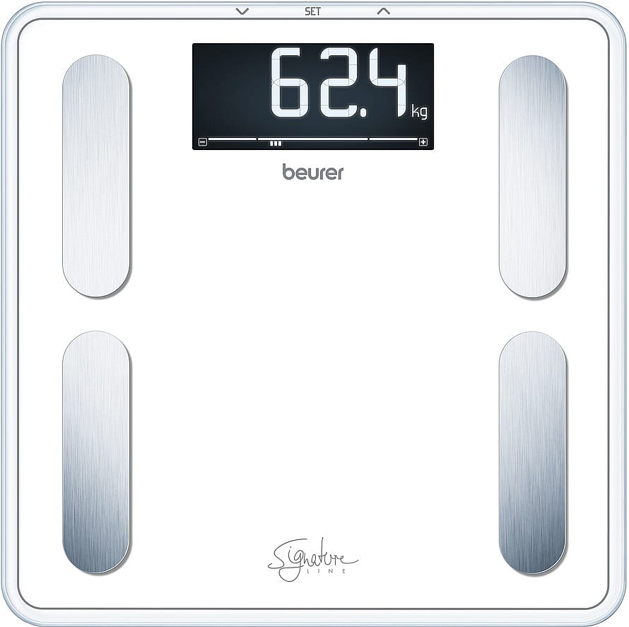 Den hvide kropsanalysevægt BF 400 er en del af Beurer Signature Line, som består af en række personvægte, der alle har Beurers egen font i displayet og alle med en ekstra høj vejekapacitet på 200 kg.