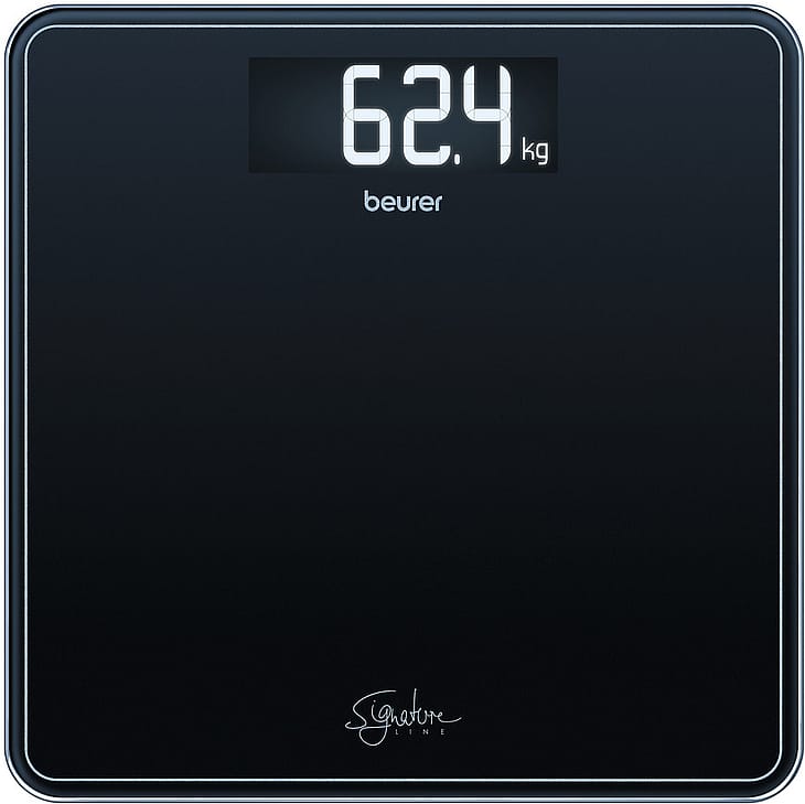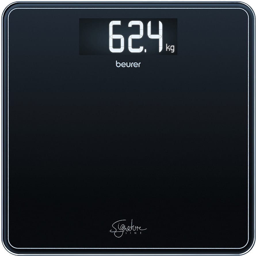 Den sorte glasvægt GS 400 er en del af Beurer Signature Line, som består af en række personvægte, der alle har Beurers egen font i displayet og alle med en ekstra høj vejekapacitet på 200 kg.