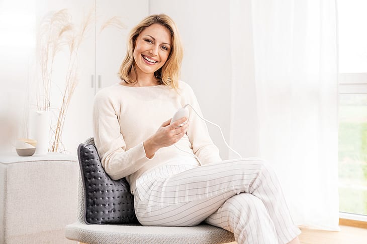 Vigtige anvisningerGem brugsanvisningen til senere brugADVARSEL• Følges nedenstående anvisninger ikke, kan det medføre personskadereller materielle skader (elektrisk stød, forbrændinger, brand).Følgende sikkerheds- og fareanvisninger er ikke kun beregnet til beskyttelseaf din eller andres sundhed, men også til beskyttelse af produktet.Overhold derfor disse sikkerhedsanvisninger, og lad dennebrugsanvisning følge med, hvis du giver produktet til en anden.• Denne varmepude må ikke anvendes af personer, som er ufølsomover for varme, eller af andre plejekrævende personer, som ikke kanreagere på overophedning (f.eks. diabetikere, personer med sygdomsbetingedeændringer i huden eller arrede områder på anvendelsesstedeteller efter indtagelse af smertestillende medicin elleralkohol).• Varmepuden må ikke anvendes på meget unge børn (0-3 år), dadisse ikke kan reagere på overophedning.• Varmepuden må ikke anvendes af unge børn (3-8 år), medmindrekontakten er indstillet af en af barnets forældre eller en anden ansvarligperson, og barnet er blevet instrueret tilstrækkeligt i, hvordanvarmepuden anvendes sikkert.• Varmepuden kan anvendes af ældre børn fra 8 år og derover samtaf personer med nedsat fysisk, sensorisk eller mental funktionsevneeller mangel på erfaring og viden, hvis de er under opsyn og er blevetinstrueret i sikker brug af varmepuden og forstår de dermed forbundnefarer.• Børn må ikke lege med varmepuden.• Rengørings- og brugervedligeholdelse må ikke udføres af børn, medmindrede er under opsyn.• Varmepuden er ikke beregnet til brug på hospitaler.• Stik ikke nåle i.• Må ikke anvendes i foldet eller sammenpresset tilstand.• Må ikke anvendes i våd tilstand.• Varmepuden må kun anvendes sammen med den kontakt, der fremgåraf etiketten.• De elektriske og magnetiske felter, som udgår fra varmepuden,kan muligvis forstyrre funktionen af en pacemaker. De ligger doglangt under grænseværdierne: elektrisk feltstyrke: maks. 5000 V/m,magnetisk feltstyrke: maks. 80 A/m, magnetisk fluxtæthed: maks.0,1 milli-tesla.Spørg derfor din læge og producenten af pacemakeren, før du anvendervarmepuden, hvis du bruger pacemaker.• Undgå at trække i ledningerne eller at dreje eller knække dem skarpt.• Kontrollér ofte, om varmepuden har tegn på slid eller beskadigelser.Hvis sådanne tegn konstateres, hvis varmepuden har været anvendtforkert, eller hvis den ikke længere varmer, skal den kontrolleres afproducenten, før den anvendes igen.• Hvis netledningen til dette apparat er blevet beskadiget, skal denudskiftes af producenten, dennes kundeservice eller en lignendekvalificeret person for at undgå farer.• Når varmepuden er tændt, må– der ikke lægges nogen genstande (f.eks. en kuffert eller en vaskekurv)oven på,– der ikke lægges nogen varmekilder, f.eks. en varmedunk, varmepudeeller lignende oven på.• De elektroniske komponenter i kontakten bliver varme under brugenaf varmepuden. Kontakten må derfor ikke tildækkes eller ligge påvarmepuden, når denne anvendes.Bestemmelsesmæssig anvendelseVIGTIGTDenne varmepude er kun beregnet til opvarmning af den menneskelige krop.4. Betjening4.1 SikkerhedVIGTIGTVarmepuden er udstyret med et særligt SIKKERHEDSSYSTEM. Denne sensorteknik forhindrer enoverophedning af varmepuden over hele dennes flade ved hjælp af automatisk slukning i tilfælde affejl. Hvis SIKKERHEDSSYSTEMET har slukket varmepuden, lyser temperaturtrinnene ikke længerei tændt tilstand.VIGTIGTKontrollér, at varmepuden ikke kan presses sammen eller blive foldet under brugen.• Forbind først kontakten med varmelegemet ved at samle forbindelsesstikket.• Sæt derefter stikket i stikkontakten.ADVARSELHvis varmepuden anvendes i flere timer, anbefaler vi at indstille detlaveste temperaturtrin på kontakten for at undgå at overophede denopvarmede kropsdel og dermed forebygge en forbrænding.Rengøring og vedligeholdelseADVARSELTræk før rengøring altid først stikket ud af stikkontakten. Adskil derefter forbindelsesstikket og dermedkontakten fra varmepuden. I modsat fald kan varmepuden blive beskadiget.VIGTIGTKontakten må aldrig komme i kontakt med vand eller andre væsker. I modsat fald kan den blivebeskadiget.Anvend en tør, fnugfri klud til rengøring af kontakten. Anvend aldrig kemiske rengøringsmidler eller skuremidler.Varmepuden består af betrækket med integreret varmepude (udvendigt) og den indvendige pude. Tag altidden indvendige pude ud forud for rengøringen. Åbn til dette formål lynlåsen. Den indvendige pude kanikke vaskes.Mindre pletter på betrækket med integreret varmepude kan fjernes med en let fugtet klud og lidt flydendefinvaskemiddel.VIGTIGTVær opmærksom på, at betrækket med integreret varmepude bliver slidt, hvis det vaskes alt forofte. Derfor bør det højst vaskes 10 gange i en vaskemaskine i hele sin levetid.VIGTIGTVær opmærksom på, at betrækket med integreret varmepude og indvendig pude ikke må renseskemisk, vrides, maskintørres, rulles eller stryges.Træk det endnu fugtige betræk med integreret varmepude i form til original størrelse lige efter vask, ogbred det fladt ud over et tørrestativ.VIGTIGT• Anvend ikke tøjklemmer eller lignende for at fastgøre betrækket med integreret varmepude til tørrestativet.I modsat fald kan det blive beskadiget.• Slut først kontakten til betrækket med integreret varmepude igen, når stikforbindelsen og denindvendige pude er helt tørre. I modsat fald er der fare for elektrisk stød.Anbring den indvendige pude i betrækket med integreret varmepude igenADVARSELTænd under ingen omstændigheder varmepuden for at tørre den! I modsat fald er der fare for elektriskstød.6. OpbevaringHvis du ikke skal anvende varmepuden i længere tid, anbefaler vi, at du opbevarer den i den originaleemballage. Adskil til dette formål forbindelsesstikket og dermed kontakten fra varmepuden.VIGTIGTLad først varmepuden køle af. I modsat fald kan varmepud