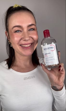 Micellar water. Renser skånsomt huden og fjerner effektivt snavs og makeup.
