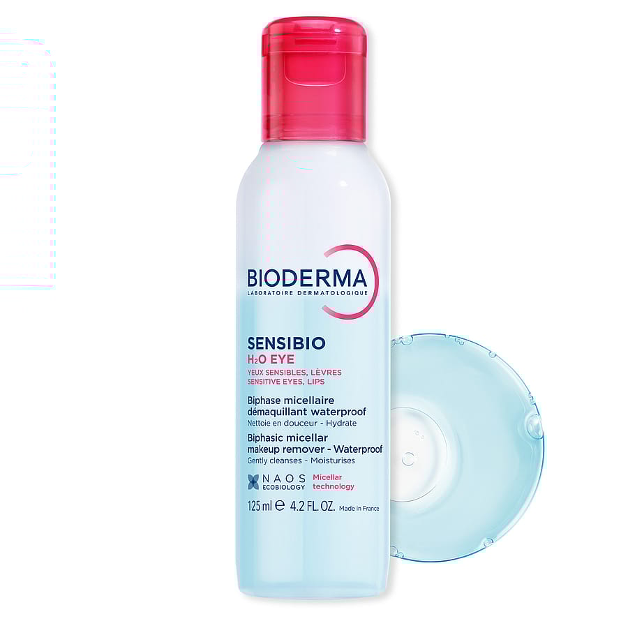 Rens og plej sensitive øjne og læber med Sensibio H2O Eye, en tofaset micellær rens som effektivt fjerner makeup og samtidig styrker hudbarrieren.