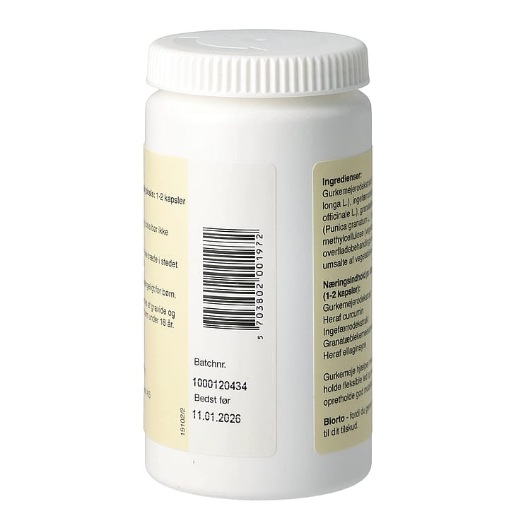 | Gurkemejerodekstrakt | 150 - 300 mg |