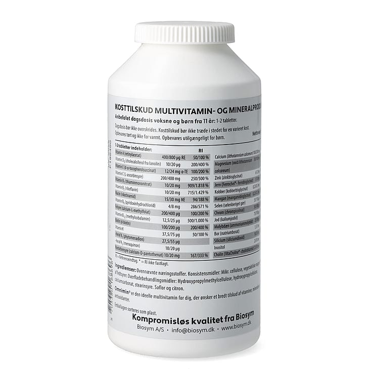 | Vitamin C (L-ascorbinsyre) | 200/400 mg | 250/500 % |
