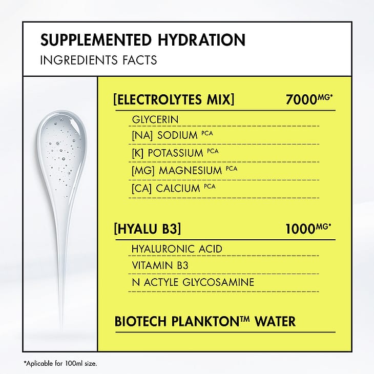 Inspireret af optimal væksebalance inden for sport lancerer Biotherm Aquasource+ Electrolyte Dewy Gel 100H, en let gel-formel, der giver op til 100 timers fugt efter kun én påføring*. Den lette gel indeholder 7000 mg elektrolyt-blanding**, kendt for at optimere fugtoptagelsen i sportsdrikke og kosttilskud, samt 1000 mg** Hyalu B3. Formlen hjælper med at reducere fine linjer på kun 1 time*** og hjælper hudens fugtreserver over tid.